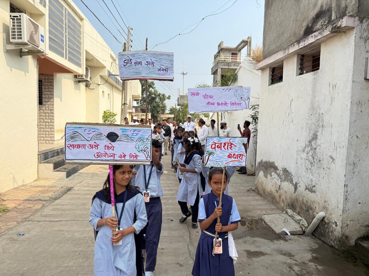 5) जी. प.शाळेतील विद्यार्थी, शिक्षक,गावातील महिला व सर्व नागरिक यांचे उपस्थितीत गावातून प्रभात फेरी काढून या अभियानाची जनजागृती करण्यात आली.